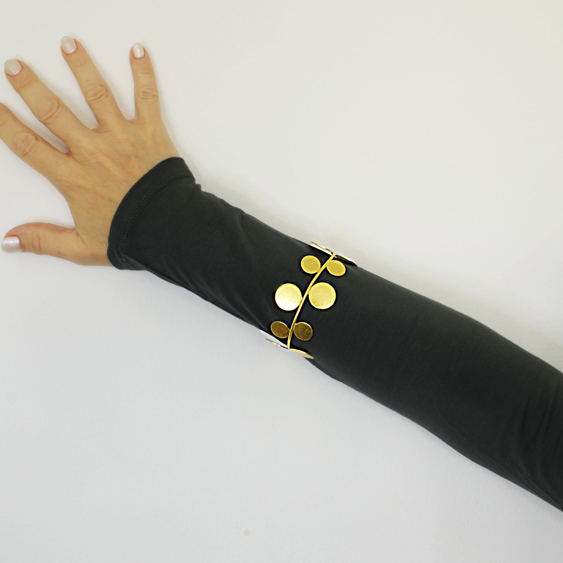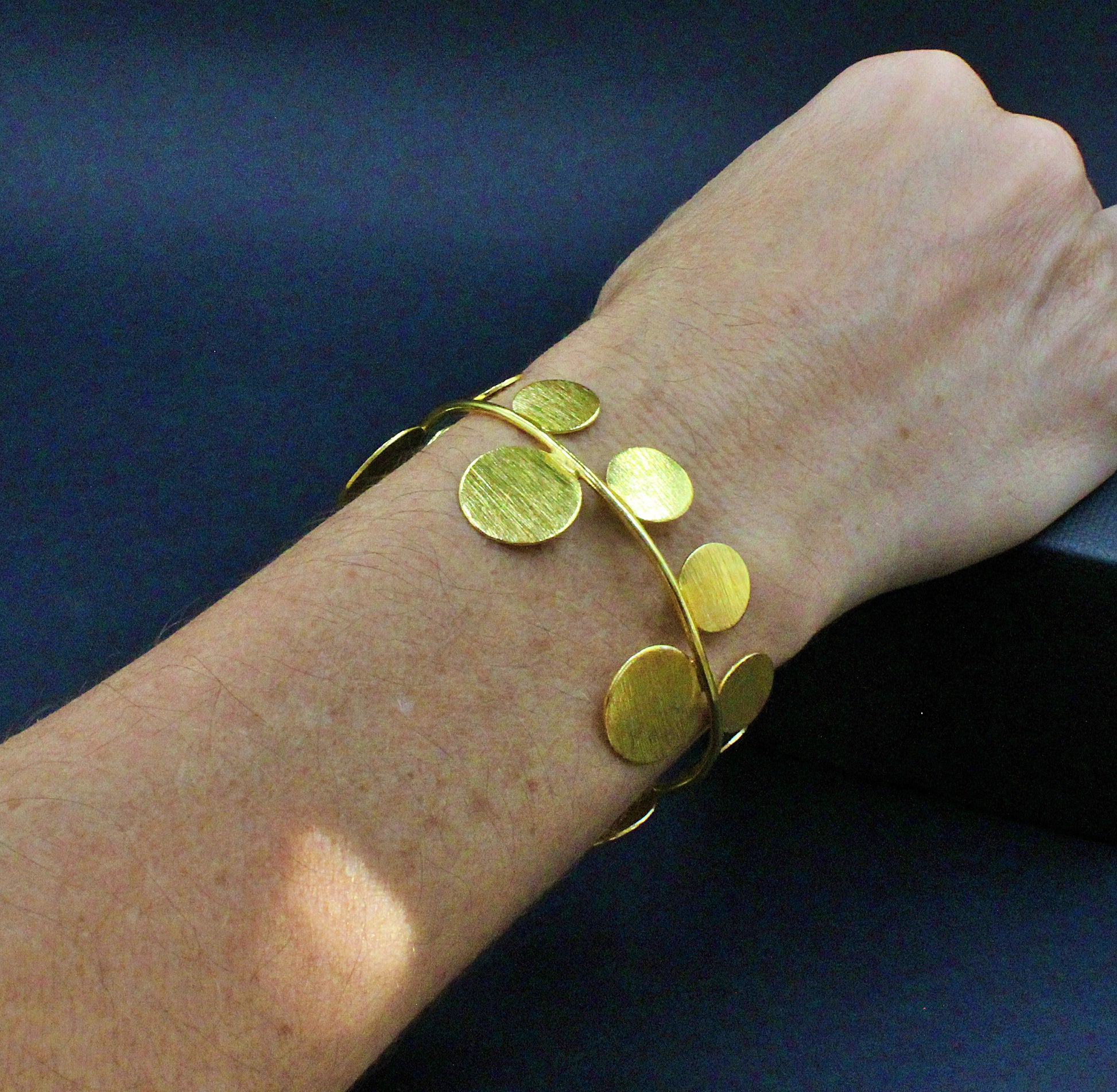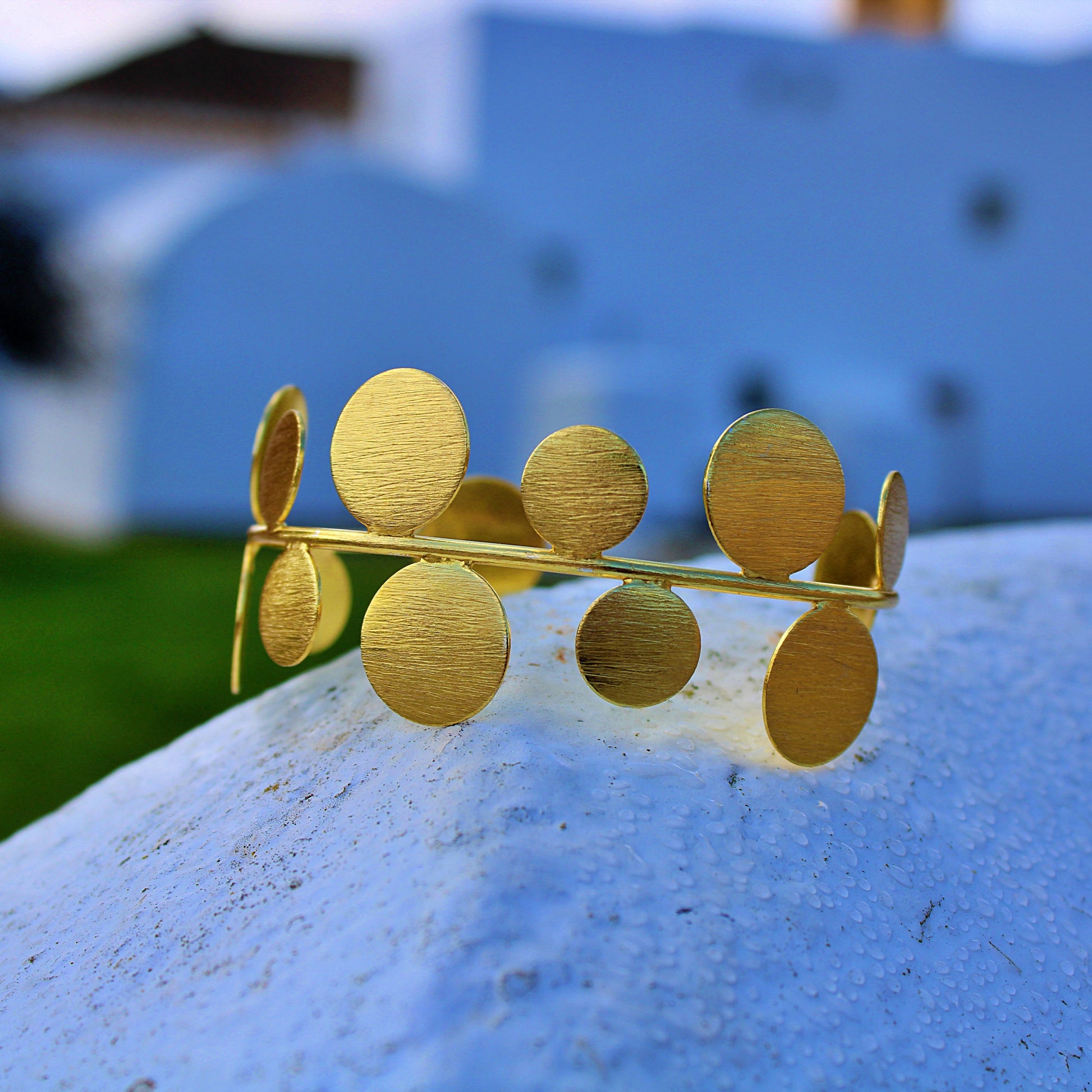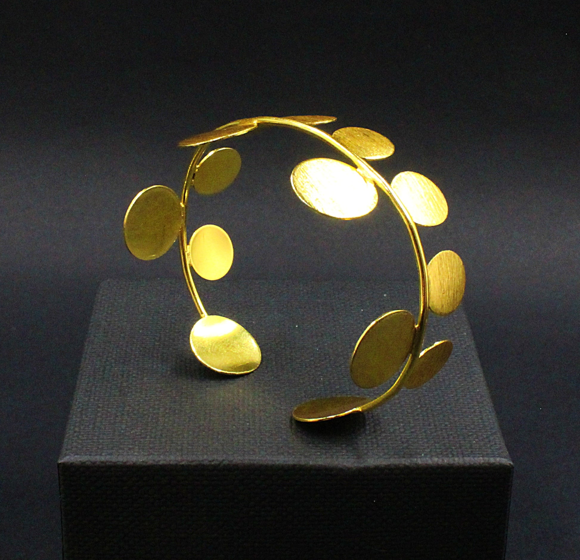 Design-Armband inspiriert von den 1920er Jahren, 18 Karat vergoldet, nickelfrei und handgefertigt. Ideal für Tag und Nacht, sowohl für informelle Treffen mit Freunden als auch für Geschäftsessen. Darüber hinaus sind sie aufgrund ihrer Vielseitigkeit mit jedem Kleidungsstück in Ihrem Kleiderschrank kombinierbar.