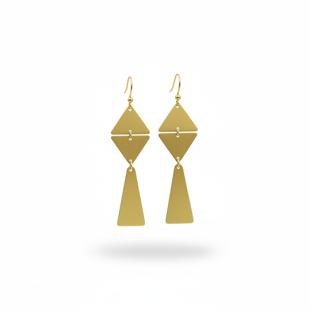 SAETERA Designer-Ohrringe. Inspiriert von Schlossfenstern. handgefertigt und mit 18-karätigem Gold ohne Nickel plattiert. Sie eignen sich ideal für Abendessen mit Freunden oder Veranstaltungen, auch für den Tagesgebrauch. Sie können sie mit formeller oder informeller Kleidung kombinieren.