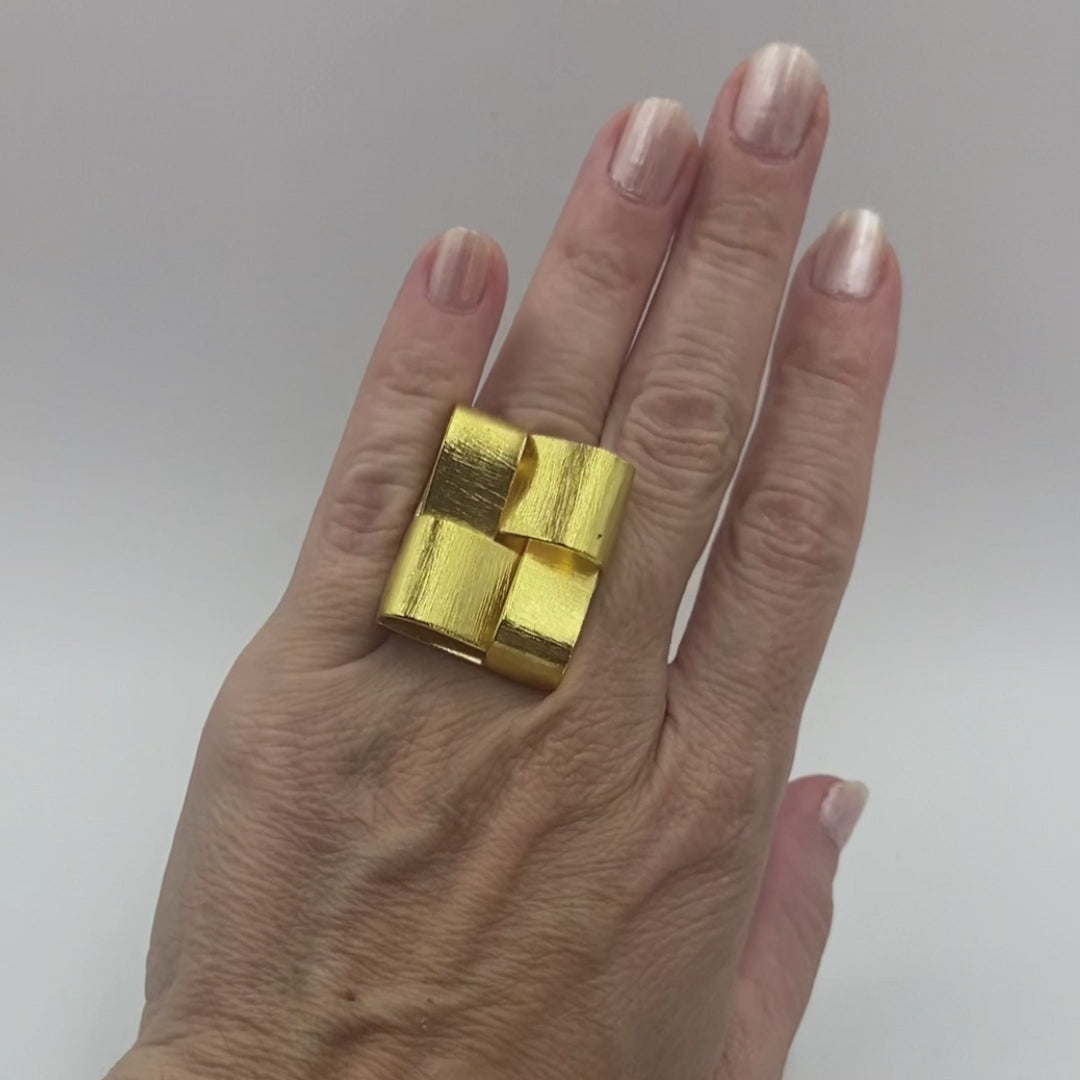 Diseño de vanguardia, anillo QUART. Acabados de calidad y un destacado diseño se unen para que destaques con elegancia. Diseño atemporal. Elaborado en latón y bañado en oro 18kt, sin níquel y meticulosamente hecho a mano, este anillo es una expresión de estilo y sofisticación. Hipoalergénico.