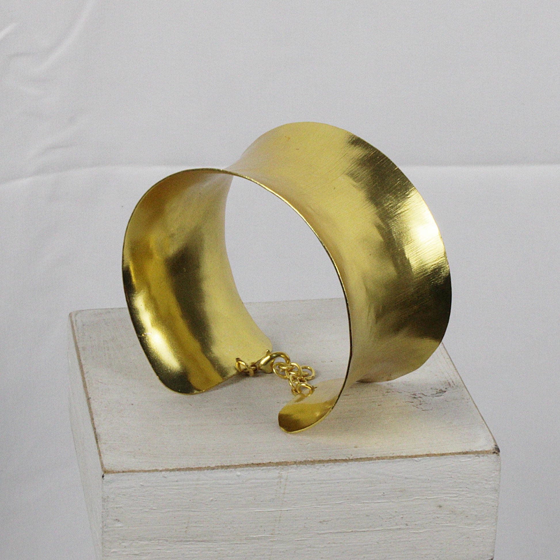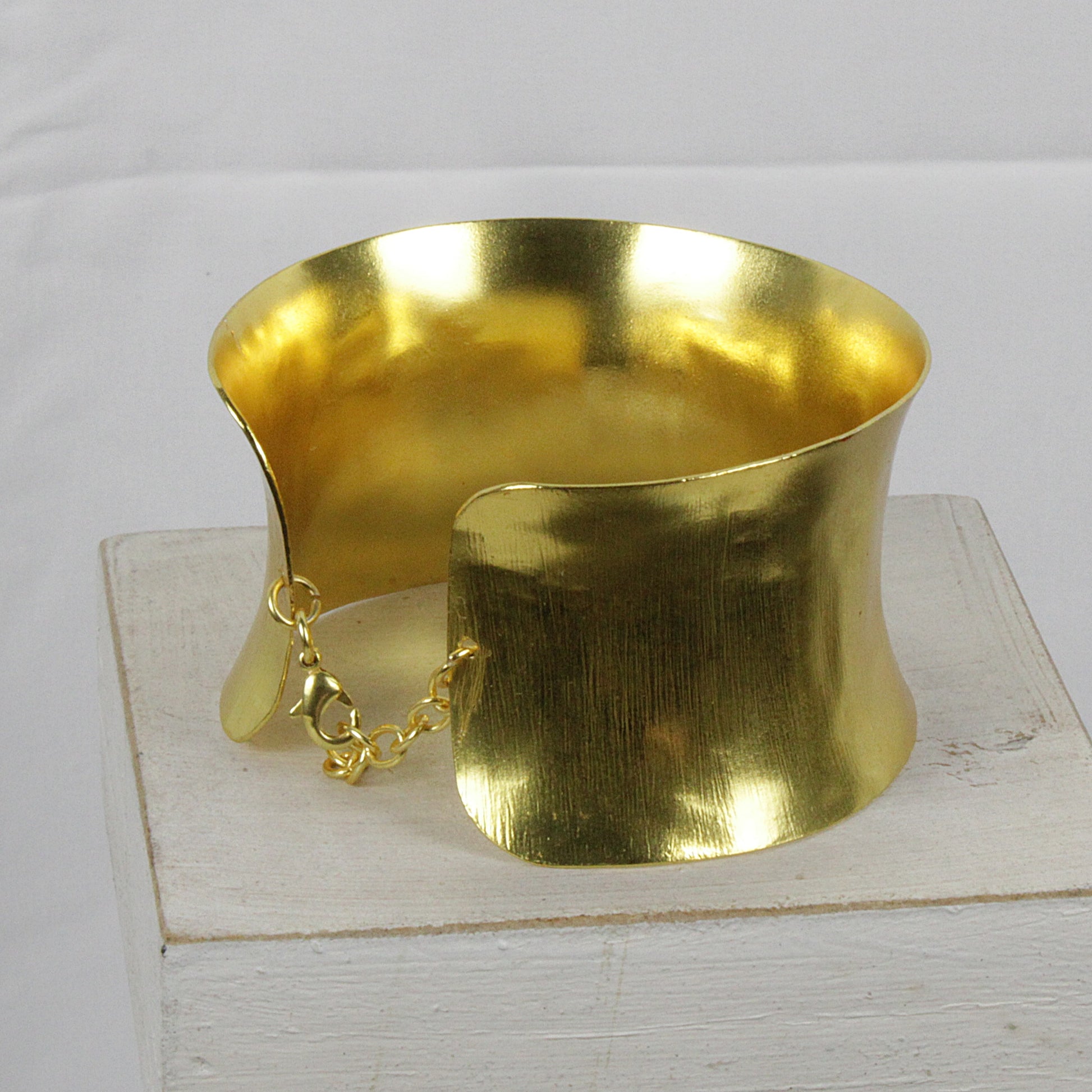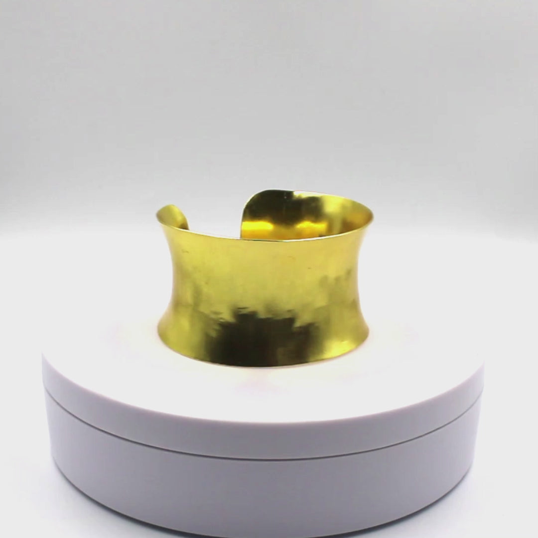 Brazalete DALIA con un acabado muy logrado, refinado. Este brazalete de diseño atemporal expresa estilo y sofisticación. Elaborado en latón y bañado en oro 18kt, sin níquel y meticulosamente hecho a mano, hipoalergénico. Su suave superficie interior y la forma abierta, logran que este modelo sea muy cómodo de usar.