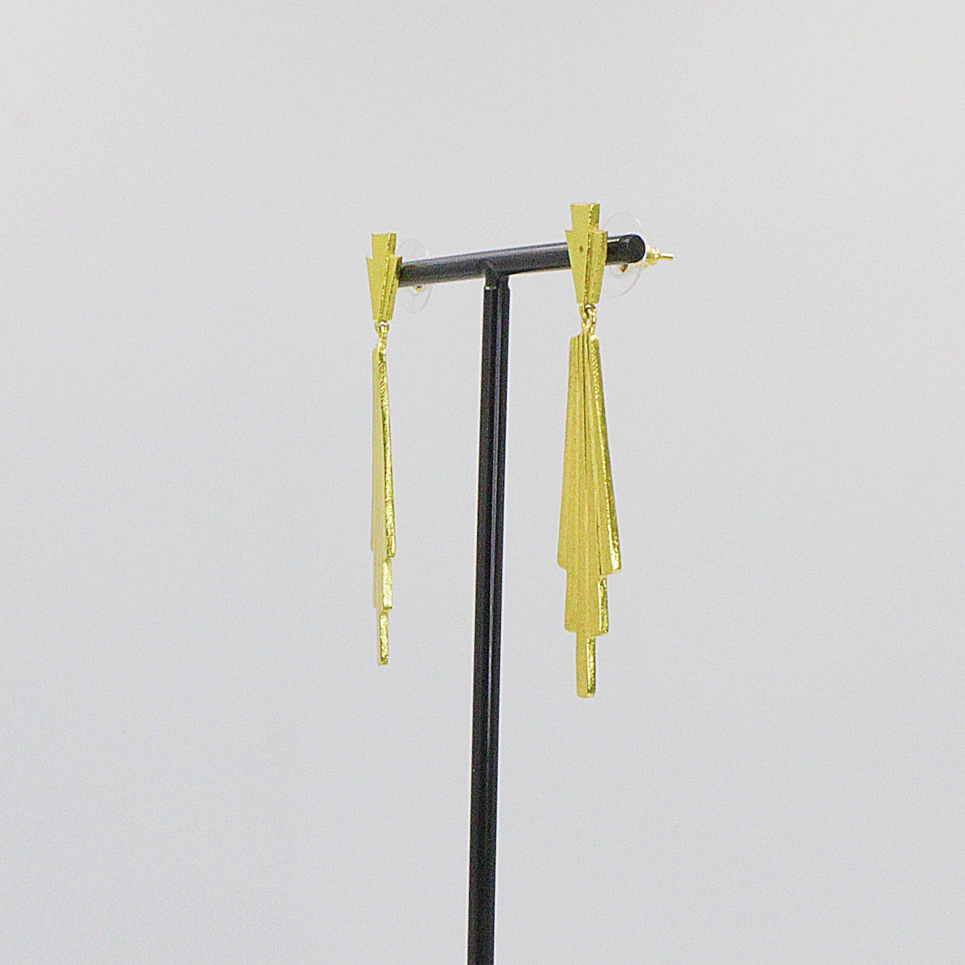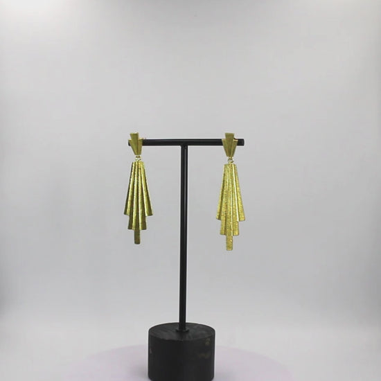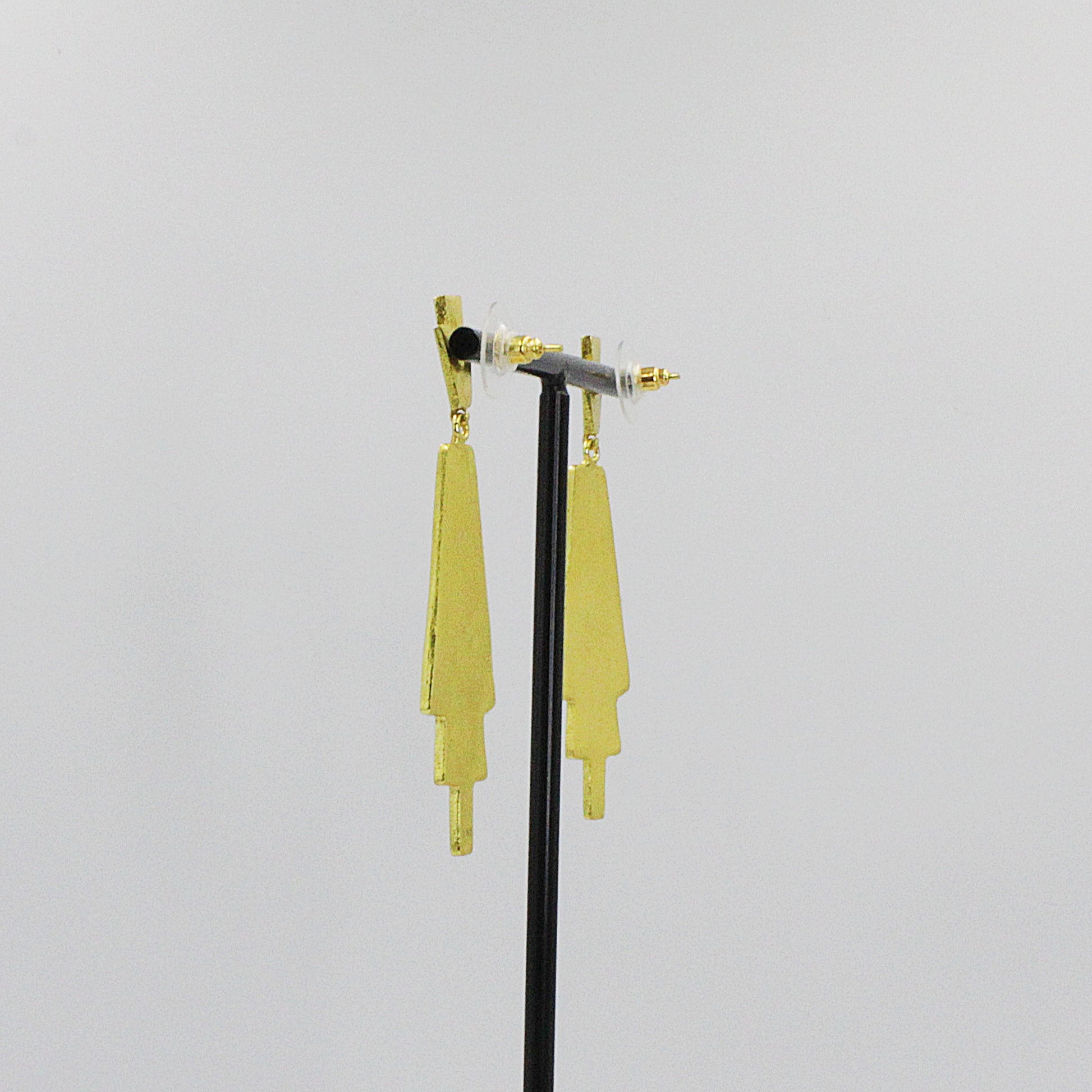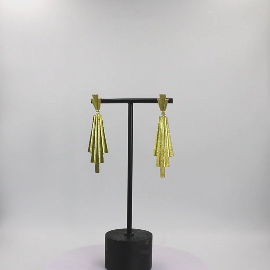 Pendientes CINEMA Nº2, inspirado en el Art Déco. Elaborados en latón y bañados en oro 18kt, sin níquel y meticulosamente hechos a mano. Hipoalergénicos.