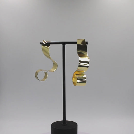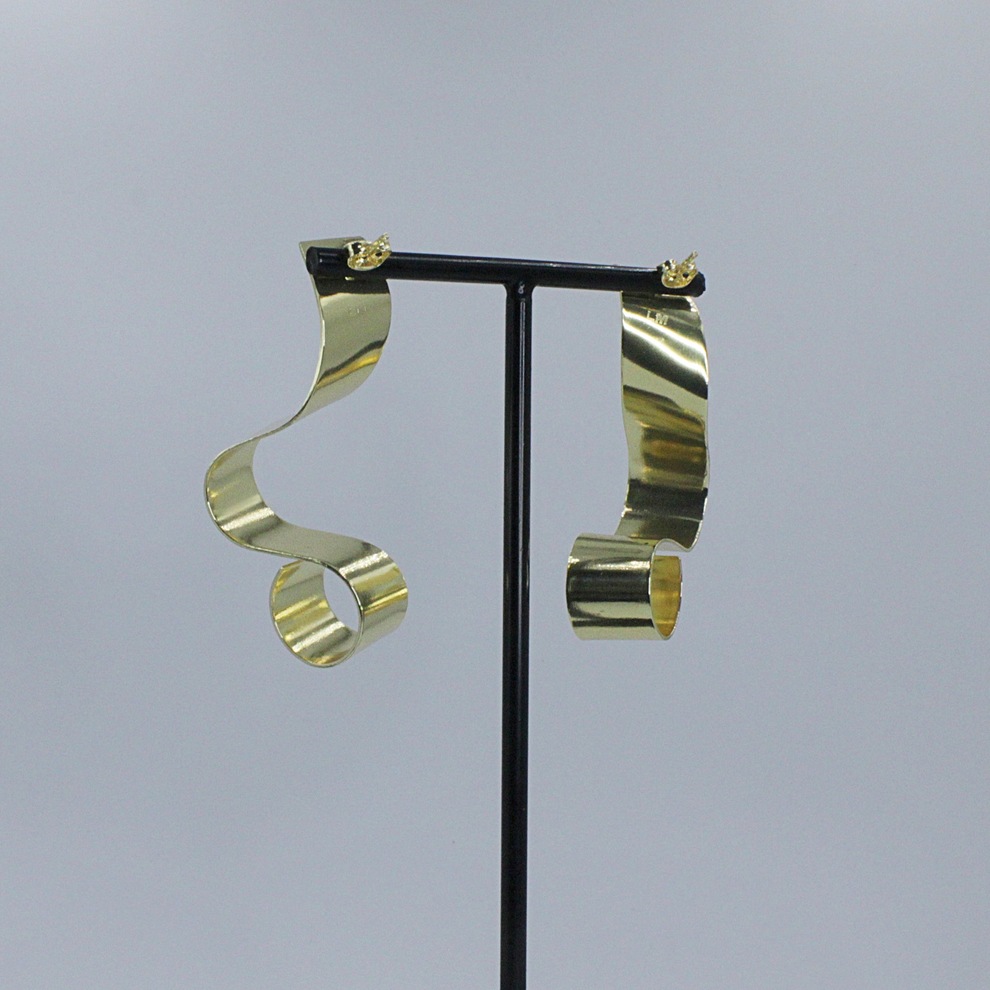 Pendientes RULLO de diseño curvo bañados en oro 18kt, versátiles, originales y llamativos. Compuesto por una única pieza, diferente y con estilo. Añade un toque de diseño a tu outfit. Hechos a mano en latón y bañados en oro sin níquel. Hipoalergénicos